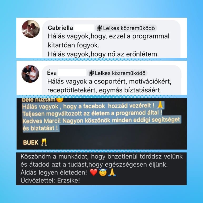 „Meg kell hogy mondjam, hogy egyetlenegy fillérét sem bántam meg! Egészben szemléltél minket. Végre éreztem azt, hogy nem orvosra van szükségem, hanem emberre, aki engem komplex egészként képes kezelni, és erre ad nekem tanácsot, hogy hogyan fejleszthetem ezt a komplex egész lényt, aki én vagyok magam, és ez nekem nagyon bejött!
